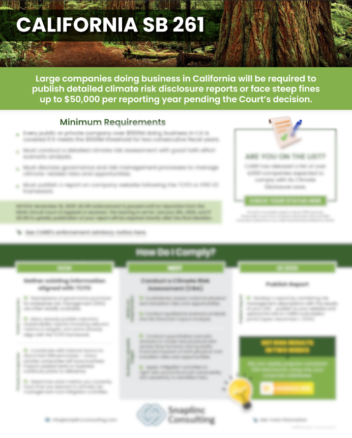 If your company is over $500M for two consecutive fiscal years and your SB 261 report isn’t underway yet, let Snaplinc guide you on what's required and what's not.